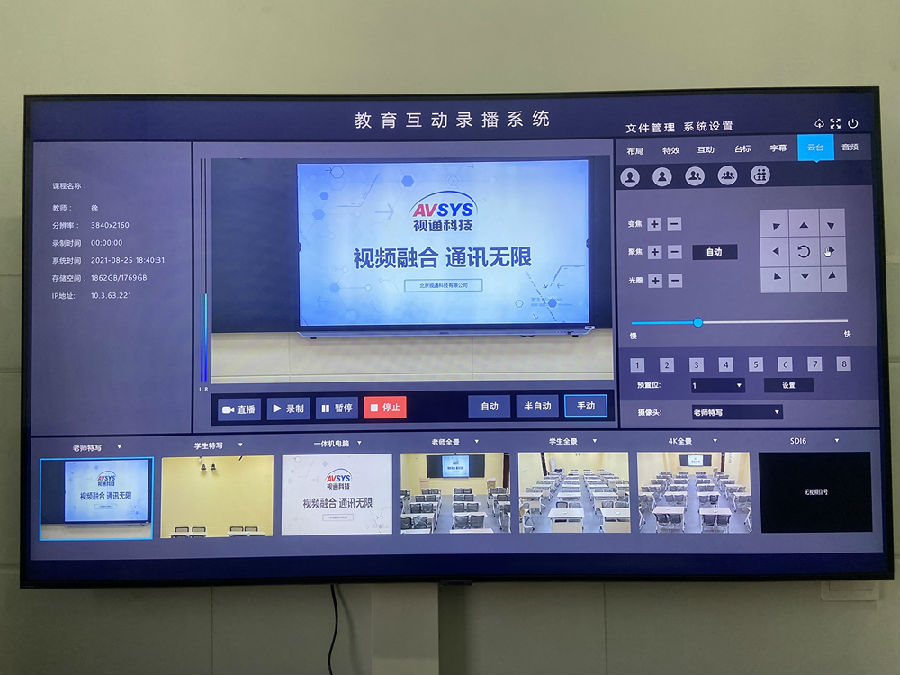 项目包含:本项目共建设1个录播教室,使用1台华体会体育科技(AVSYS)多媒体综合管理一体机,实现统一控制管理,音视频调度,会议室互动等应用。