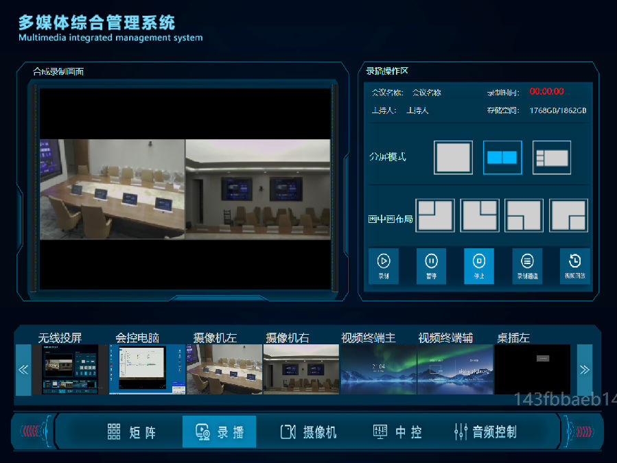 5. 内置4K超清录播,支持导播可提供2/4/6/8等多种模式合成选择,视频会议、本地会议、电影等视频多路同时录制。