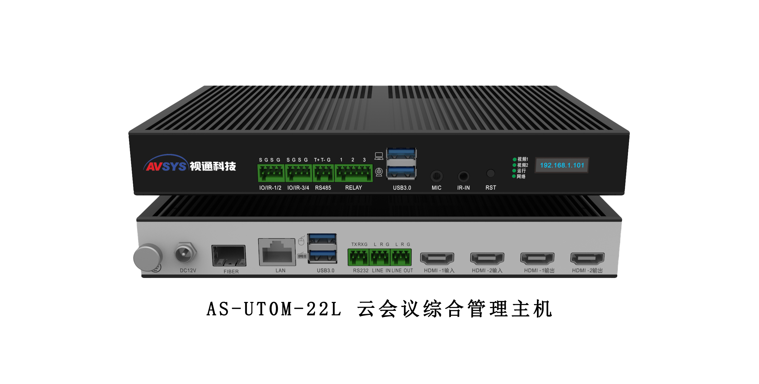 AS-UT0M-22 是一款多功能,支持本地视频切换、本地环境控制、远程音视频会议、互动培训、虚拟场景搭建以及视频录制功能的迷你型综合管理主机。同时设备具备UV/AC数据传输能力,可对接常见的音视频交互软件。主要应用于线上会议、网络教育以及电商等应用场景。