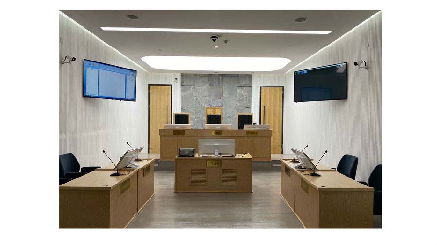 华体会体育科技法庭系统主要用于庭审过程中对当事人、证人、审理员等法庭陈述声音、笔录内容、现场图像、实物证据、多媒体证据的实时采集录制,同步刻录,为审判的事后查证、研究、交流提供直观、详实的原始资料。科技法庭管理系统可与上级媒体平台进行对接,对接后通过后台系统可进行远程庭审直播、点播,案件查看,案件统计分析,法庭管理,笔录查看,庭审指导等功能。主要应用于法庭、模拟法庭、劳动仲裁庭、知识产权中心审理庭、调解室、远程提讯室。